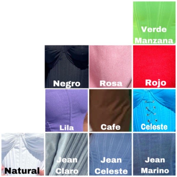Scarlett es un corset confeccionado en bengalina doble capa con varillas, ojales, cinta regulable, busto estilo corazón con escote, mangas princesa y frunce en los codos.